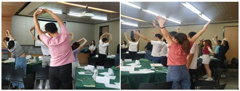 下午課程開(kāi)始前,學(xué)員們跟隨視頻鍛煉與放松,以便更好的學(xué)習(xí)。
