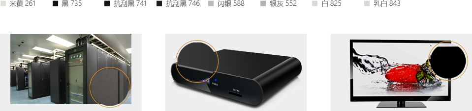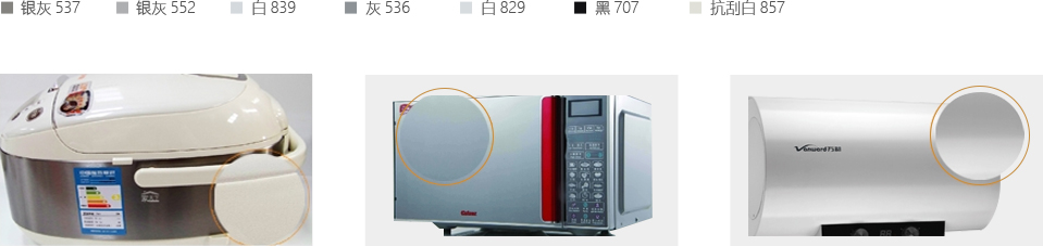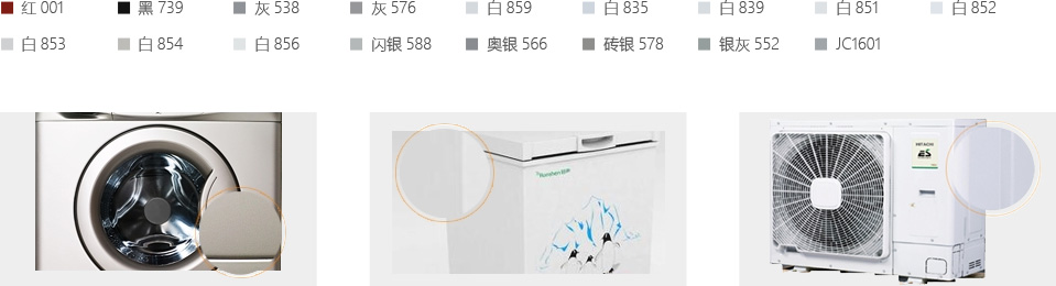 廣泛用于冰箱、冷柜、洗衣機(jī)、空調(diào)為代表的冰洗家電行業(yè),色卡如下: