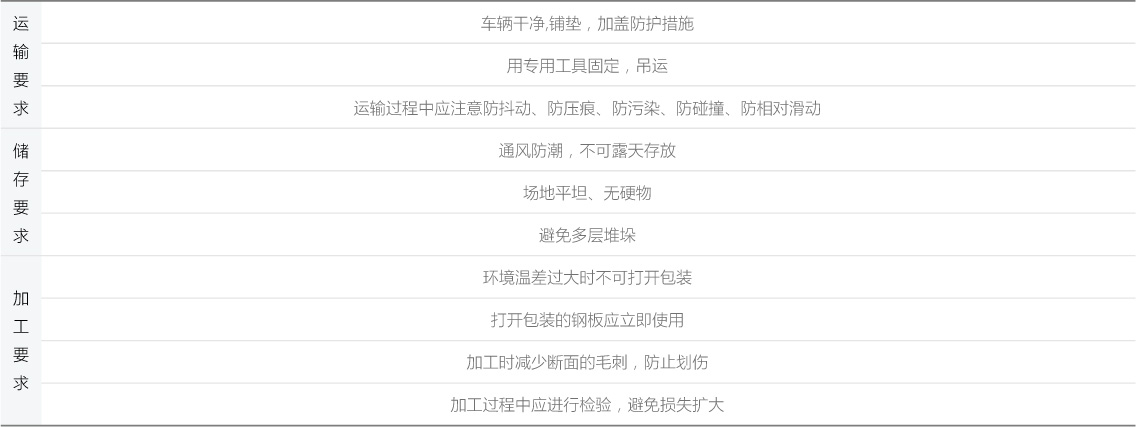 訂貨時用戶需提供:產(chǎn)品名稱(鋼板或鋼帶)、牌號、表面處理方式、表面質(zhì)量級別、重量、包裝方式等信息;選擇產(chǎn)品牌號及表面處理方式時請確認或驗證產(chǎn)品使用時的成型要求、沖壓要求、防腐要求、防止因所訂牌號和表面處理方式對應的產(chǎn)品性能不滿足加工要求。